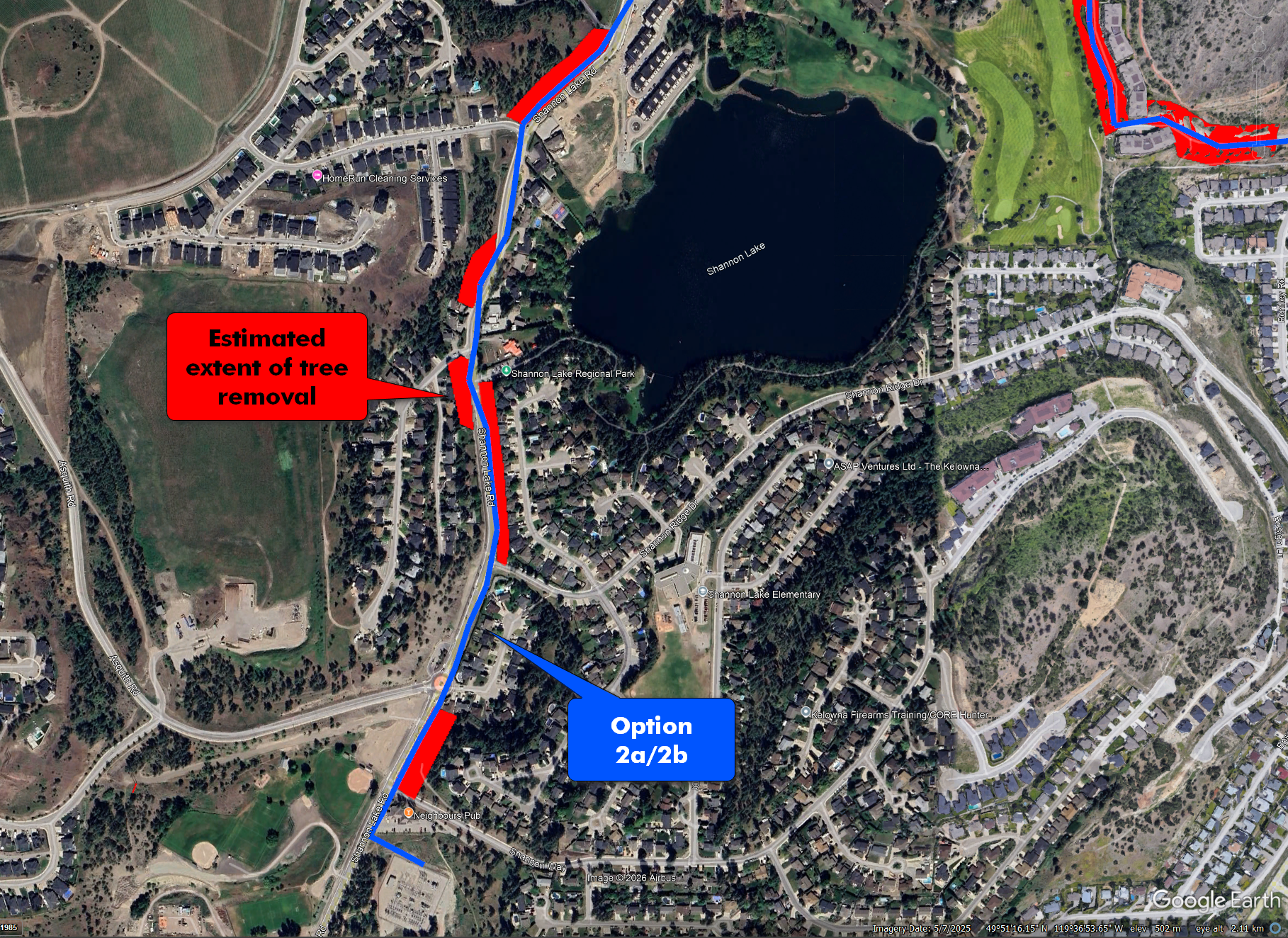 Option 2B impacts the northern stretch of Shannon Lake Rd.